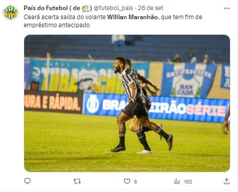 Insatisfeitos com a postura do meio-campista, os dirigentes do Ceará tentaram a devolução de Willian antes mesmo que o contrato de empréstimo termine, em dezembro deste ano. O Santos, de imediato recusou tal possibilidade, determinando que o retorno só aconteça no final do acordo assinado. Importante lembrar que Willian Maranhão tem vínculo com o Peixe até o final da temporada de 2024. O volante chegou na Vila Belmiro em março de 2022, após o Santos desembolsar algo em torno de R$ 500 mil, por 70% de seus direitos.