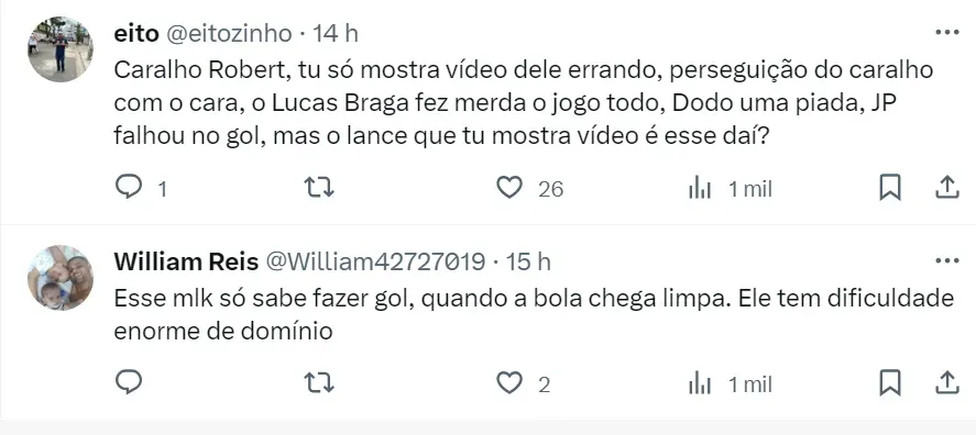 O ex-jogador Robert, campeão pelo Peixe, postou um vídeo no Twitter de um lance de Marcos Leonardo na partida contra o Athletico e disse: “É uma briga com a bola impressionante…”.