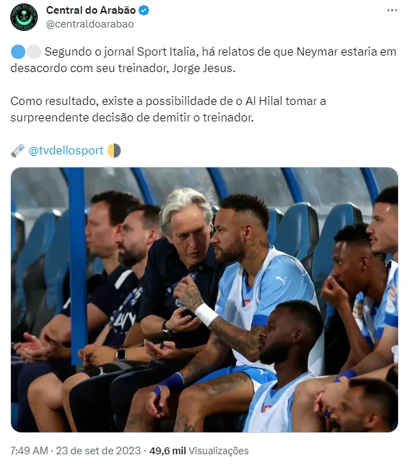 Primeiro que a ida de Neymar para o Oriente Médio já rendeu muitas críticas. Com um futebol respeitado no mundo todo, o jogador deixou a camisa 10 do PSG e assinou com o Al-Hilal, mesmo tendo o interesse de outras equipes da Europa para fechar com o atleta. Ao chegar em Riad, o brazuca se deparou com o técnico Jorge Jesus, muito identificado com a torcida do Flamengo, mas que não está com muita moral dos árabes. Até por isso que um problema paira sobre o ar do Clube Saudita.