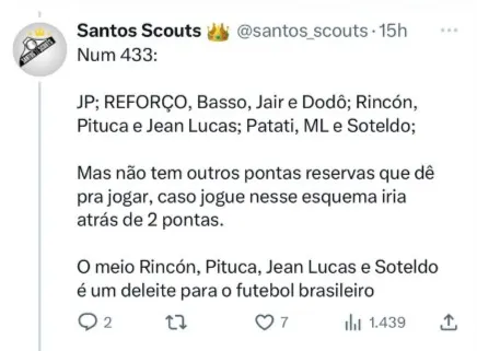 “A torcida pode confiar porque temos chance de sair dessa situação. Já mostramos que temos condições de ganhar os jogos que são necessários. Eu pedi para falar porque me sinto responsável pelo resultado. A torcida sabe que nunca me escondi, vim para o Santos sabendo da situação porque acredito, confio no time e posso dar a cara a tapa para dizer que estamos trabalhando. É pedir que confiem porque vamos sair dessa situação”, concluiu.
