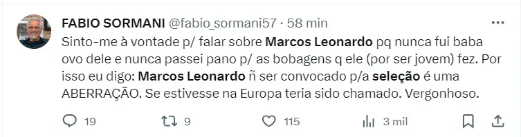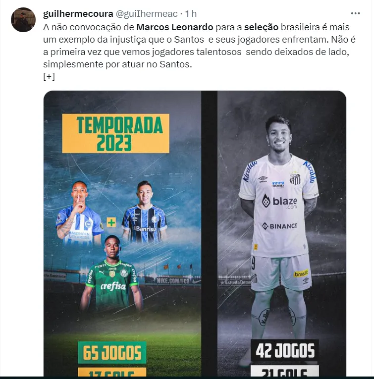 Apesar da posição na tabela de classificação, o elenco do Santos tem bons jogadores que vem se destacando em campo. Como é o caso de Marcos Leonardo. Diante do que vem entregando na temporada a sua ausência na convocação de Diniz acabou surpreendendo os torcedores.