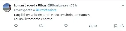 “O momento que vive o Santos talvez não seria para mim. Não me senti seguro em relação ao projeto, às perspectivas, diferente do Carille, que aguentaria talvez 4 ou 5 porradas, e eu lá jovem, que era da Série B e tal”, disse Carpini.
