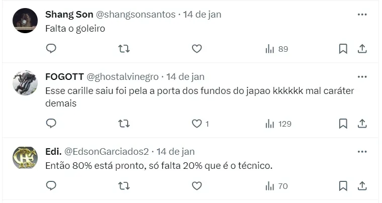 Mas, diante do atual cenário, a gestão aguarda a chegada de proposta e vem analisando o mercado em busca de opções para o jogador. A comissão técnica entende que nesse momento ele não é o nome ideal para a equipe.