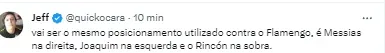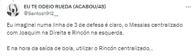 Ainda conforme o que foi trazido, Marcelo Fernandes entende que com as baixas para formar a zaga, para manter o sistema 3-5-2, Rincón tem grande força física e um alto poder de marcação, que pode ajudar no sistema defensivo.