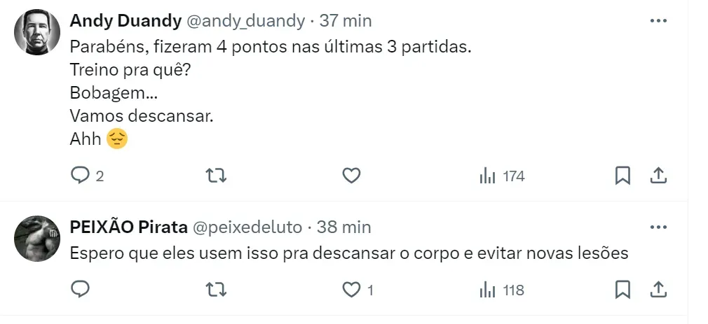 Por exemplo, o atacante Marcelinho tem entrado mal no decorrer das partidas e torcedores do Peixe pedem prioridade para jovens do time de baixo, como Hyan, Miguelito e Weslley Patati.