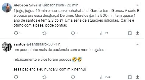 Embora o jogador não tenha desempenhado de uma maneira eficaz na estreia do Peixe na segundona, Carille tem gostado do avanço do atleta, como destacou na entrevista coletiva de pós-jogo.