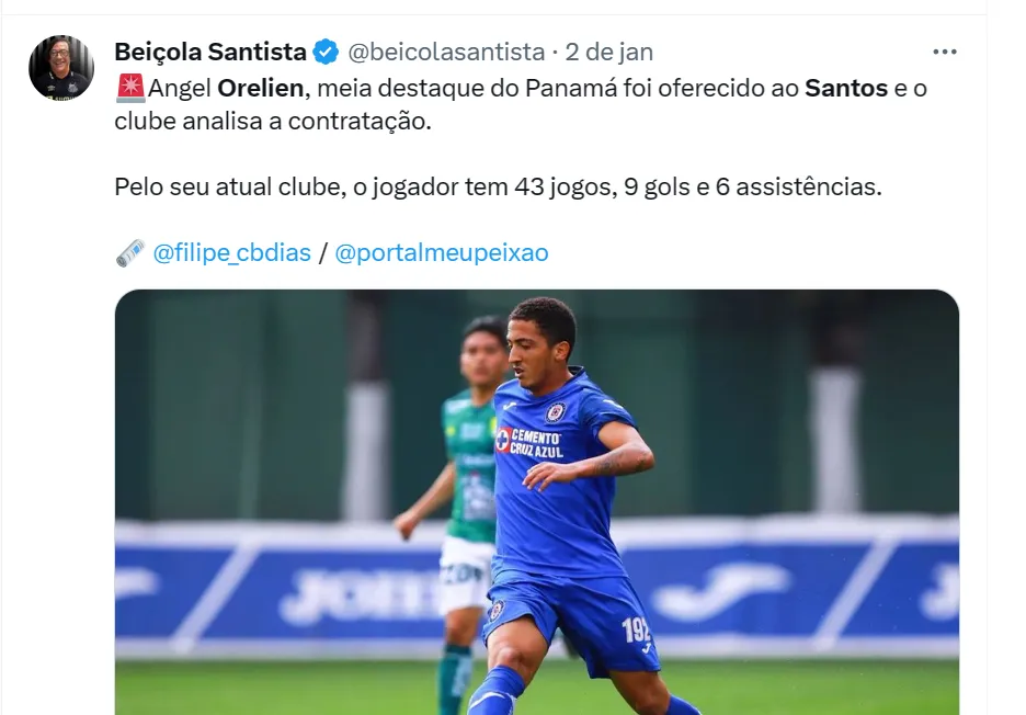 O meia panamenho recebeu sondagem de outros clubes da Europa, mas tem o desejo de jogar no Brasil. E o Santos se interessou pelas características de Orelien, por isso sai na frente.