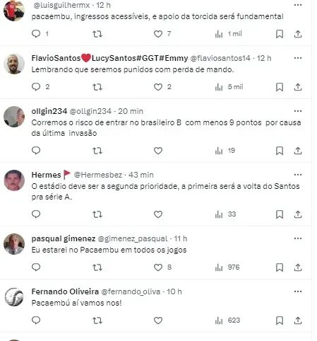 Queremos iniciar as obras o mais rápido possível. Onde o Santos estiver, a prioridade é a arena. Já conversamos com o CEO da WTorre se havia por parte da empresa algum problema com a situação da Série B”, iniciou.