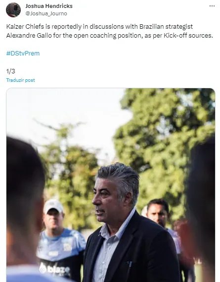 Sem treinador com a demissão de Molefi Ntseki, o Kaizer Chiefs, um dos times mais tradicionais do país africano, coloca Alexandre Gallo como uma opção. A informação é da página estrangeira Kick Off, que ganhou repercussão em outros portais sul-africanos.