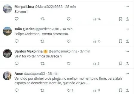 Nas redes sociais, vários santistas estão constantemente pedindo a chegada de alguns jogadores que acreditam ter potencial de ajudar a equipe neste momento delicado, visando um retorno imediato ao grupo de elite.