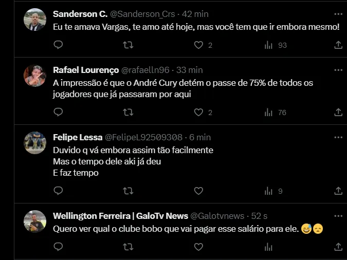 Jorge L. Cançado aproveita para citar quais sãos as equipes que aparecem como possibilidade para o chileno dar sequência na carreira em 2024: “Clubes como o Vasco, Santos e alguns de fora do país podem estar entre os possíveis interessados no futebol do chileno”, completou o atleticano com essas atualizações fresquinhas.