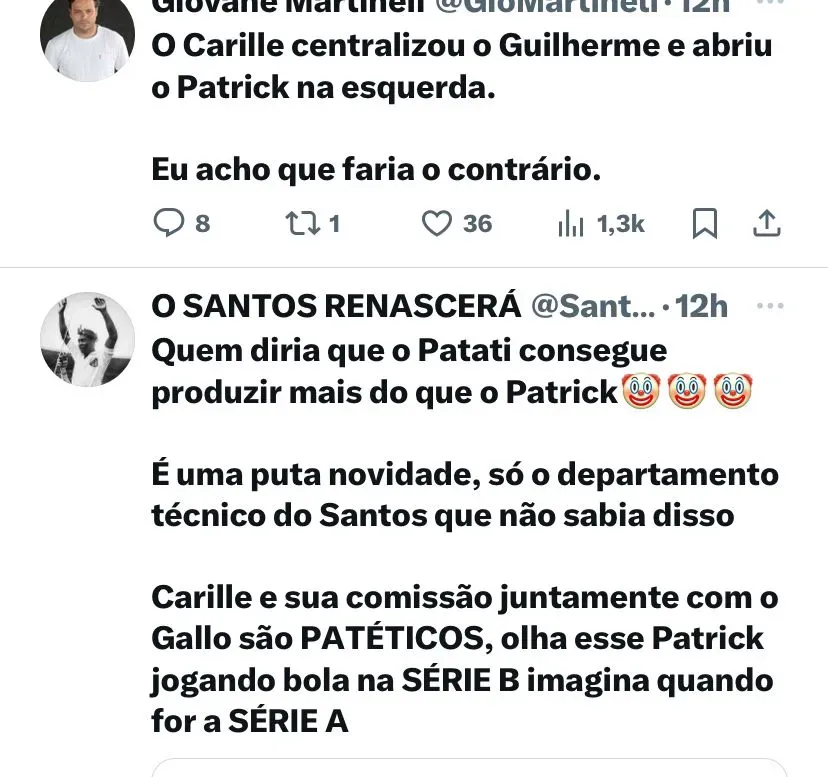 Em contrapartida, Carille afirmou que ainda é cedo para falar sobre o atleta e também sobre o desempenho de Morelos: “Patrick a gente tá conhecendo agora. Tem trabalhado bastante. O lance do Morelos não sei te responder. Só estou com a imagem do campo. Fez a infiltração que a gente sabe que é forte para fazer, o facãozinho, ficou na cara do gol. Talvez a decisão dele não tenha sido a melhor. Mas depois, com a imagem, terei uma clareza melhor do lance.”