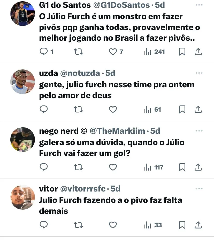 Furch busca retomar seu melhor momento atuando pelo Alvinegro Praiano. Desde que sofreu uma lesão na final do Paulistão, ele se encontra um pouco abaixo de seu nível habitual. A reintegração de Morelos ao elenco significa que o jogador tem um concorrente de peso em sua cola. Otero também tem a concorrência de Pedrinho.