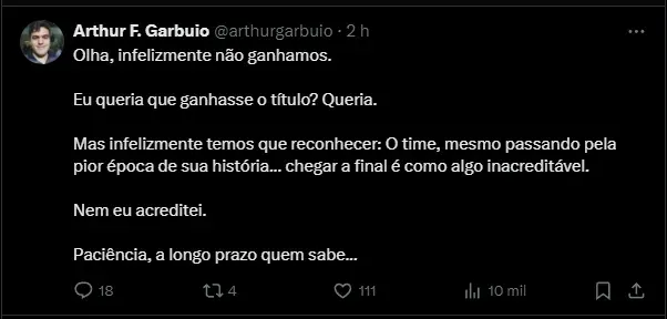 Fábio Carille comentou sobre o lance durante a coletiva de imprensa: “Veio as informações de que no 1° gol a bola estava rolando. Aí o senhor VAR nunca trabalha. É estranho isso, são coisas que deixam muitas dúvidas“.