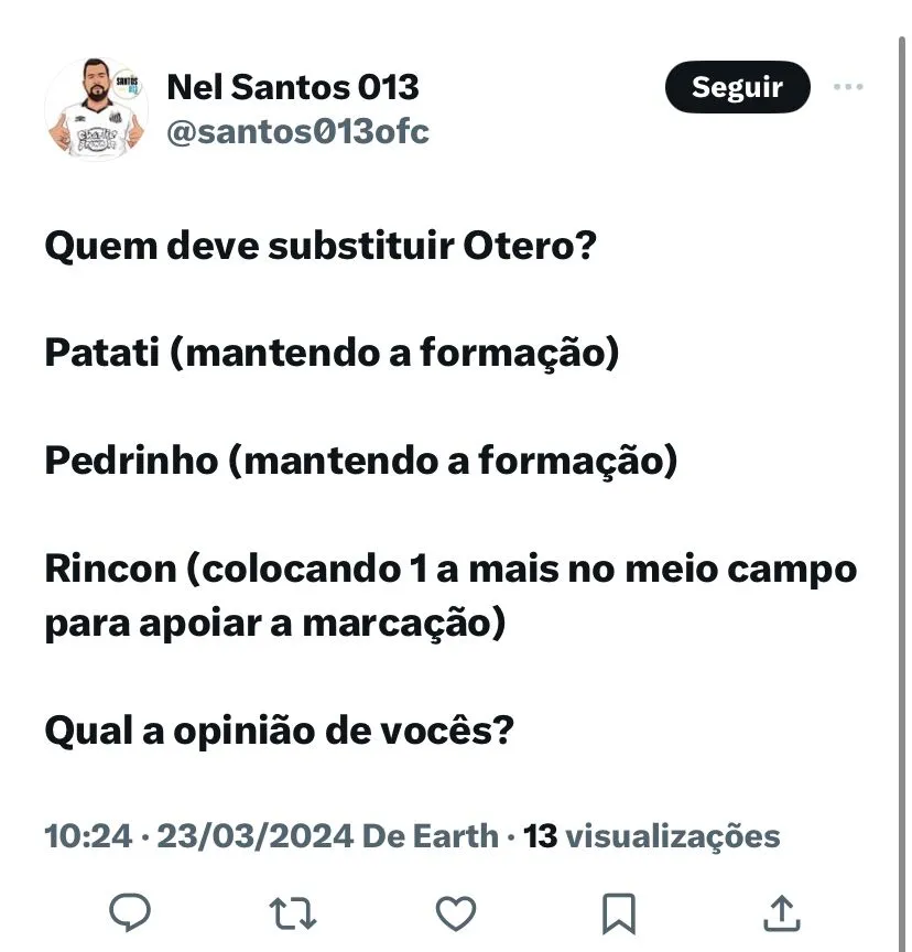Por exemplo, com a entrada de Pedrinho ou Weslley, nesse caso, seria mais uma dúvida para Carille. Neste caso, Giuliano atuaria como meia-armador, com um dos atacantes caindo para a direita. De qualquer forma, durante a semana, isso deverá ser definido. Além da situação de Otero, ‘vazou’ também que um dos titulares do Peixe estaria com os valores atualizados no mercado.