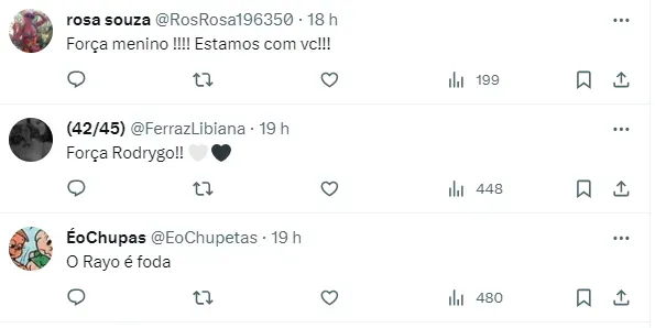 “Força, Rodrygo. Mais do que repudiar, o Santos FC deseja que todos os responsáveis pelos atos de racismo cometidos contra o nosso Menino da Vila sejam condenados como determina a lei. Racismo é crime e assim deve ser tratado. A nação santista sempre estará com você, Rayo!”, disse a nota.
