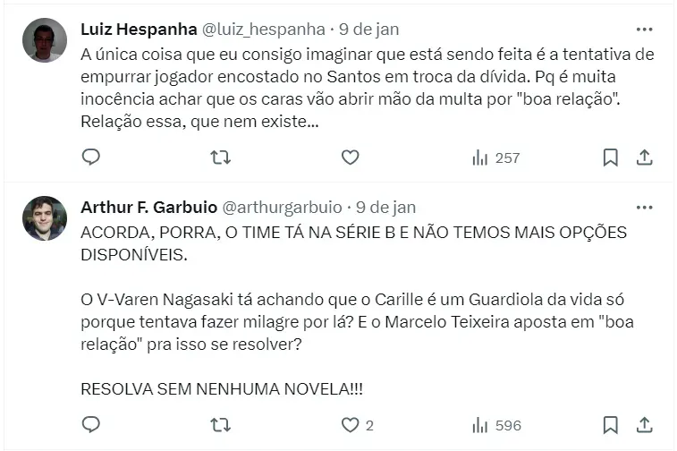 O Santos acionou o departamento jurídico, onde será debatido o valor da multa. Enquanto isso, o Peixe aguardava o acerto entre o agente de Fábio Carille e os representantes do V-Varen Nagasaki. A intenção é que ocorra nessa semana.