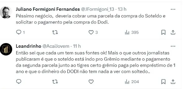 As diretorias não divulgaram maiores detalhes sobre o acerto. O clube exigia que os gaúchos pagassem uma das parcelas pela compra dos direitos do jogador, no valor de US$ 1 milhão (R$ 4,8 milhões).