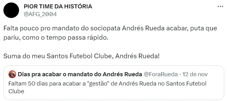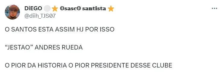 Porém, além do resultado ruim em campo, o empate significou ainda mais uma parte de uma marca negativa na trajetória de Andrés Rueda na presidência do Santos.