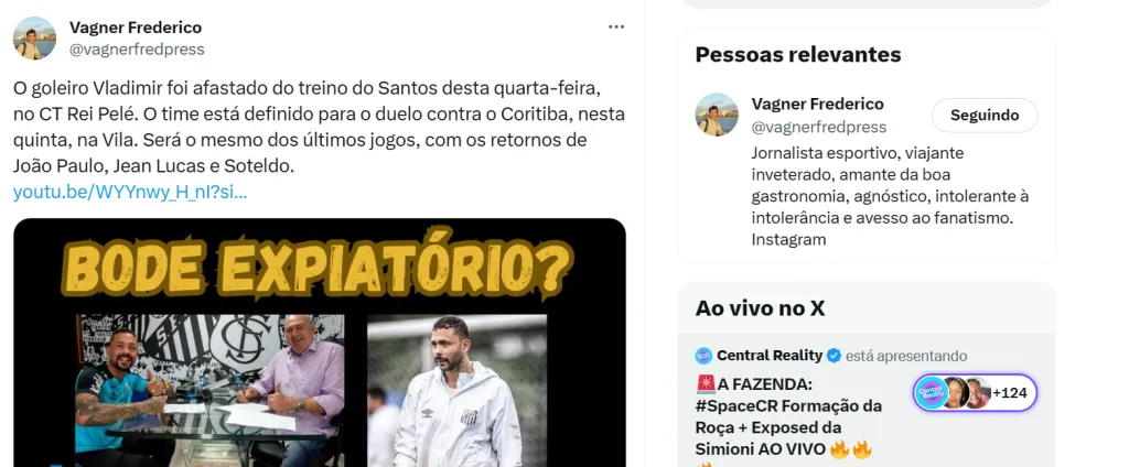 Gallo fez certo em afastar Vladimir do treino do Santos?