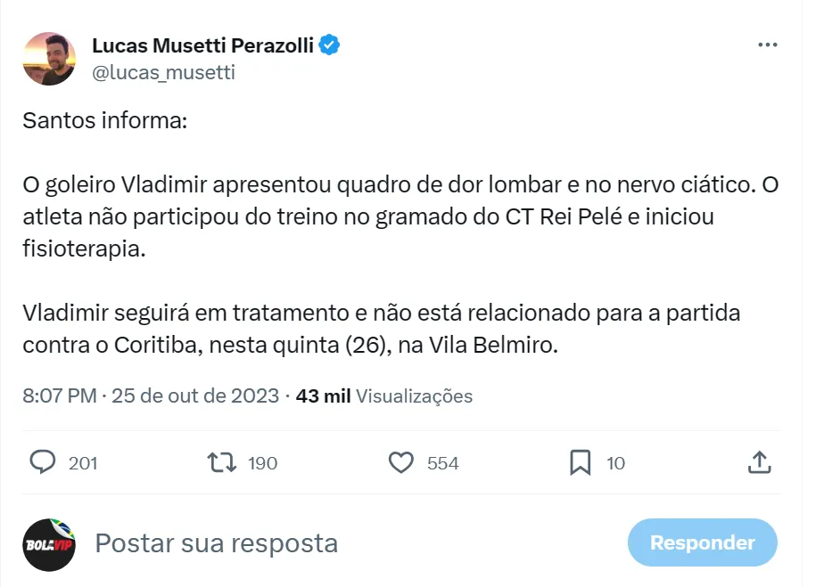 Segundo informações do setorista Vagner Frederico, que cobre o dia a dia no Peixe, Gallo afastou o goleiro Vladimir, que deve rescindir seu contrato nos próximos dias. O camisa 1 foi considerado o principal culpado, como informaram fontes de dentro da Vila Belmiro, pela goleada por 7 a 1 em Porto Alegre e acabou surpreendido pelo comunicado do dirigente.