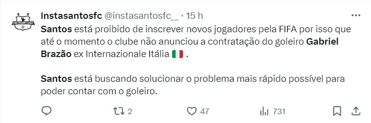 Diante disso, o Clube segue impedido de inscrever novos reforços no Campeonato Paulista. O Santos estava otimista com a negociação com o ex-técnico, mas não conseguiram chegar a um denominador comum.