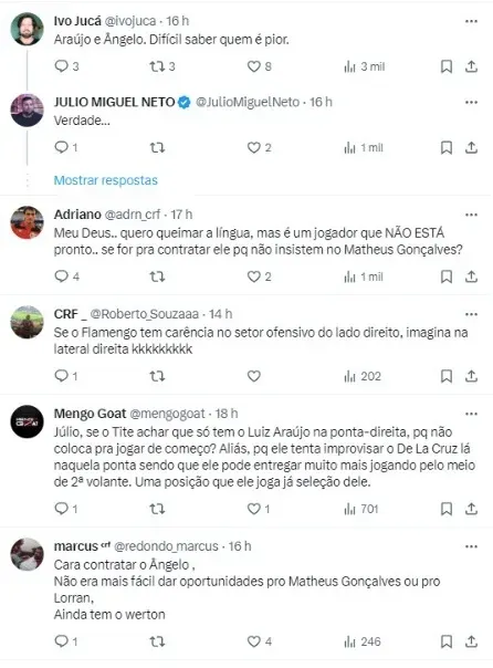 “O nome de Ângelo na época foi sugerido/oferecido e avaliado positivamente pela direção do clube. Como falei na matéria de quase um mês atrás, a diretoria avalia o atacante ex-Santos como um bom nome e agrada, porém, naquele momento o técnico Tite colocou Luiz Henrique como o alvo principal”, acrescentou.