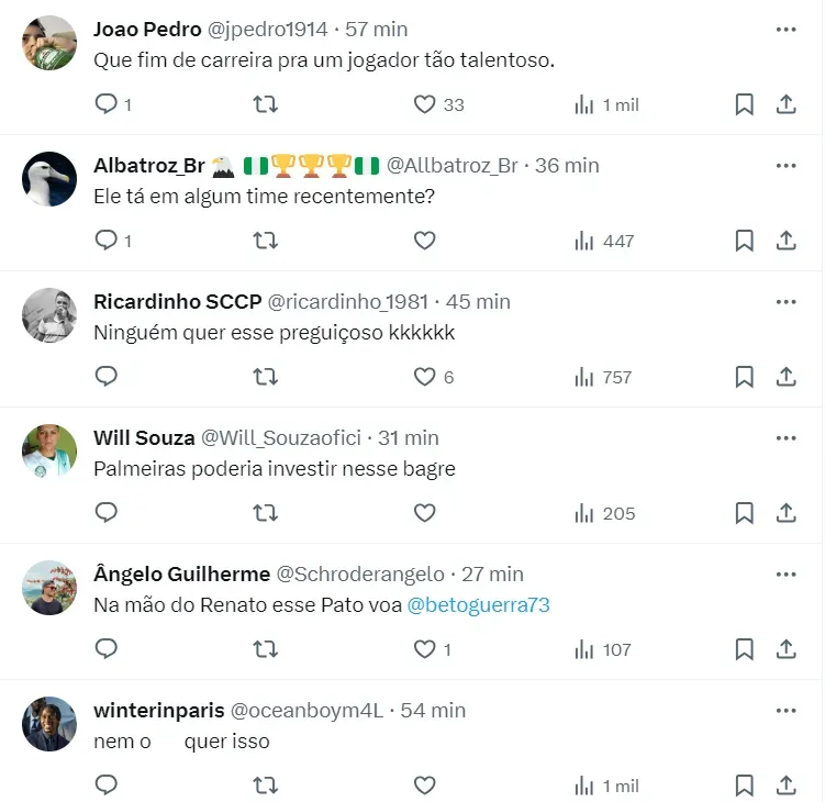 Com isso, alguns jogadores que estão livres no mercado estão sendo oferecidos ao Santos para a próxima temporada. Como é o caso de Alexandre Pato, que estava no São Paulo e não caiu nas graças de Dorival Júnior para permanecer na equipe.
