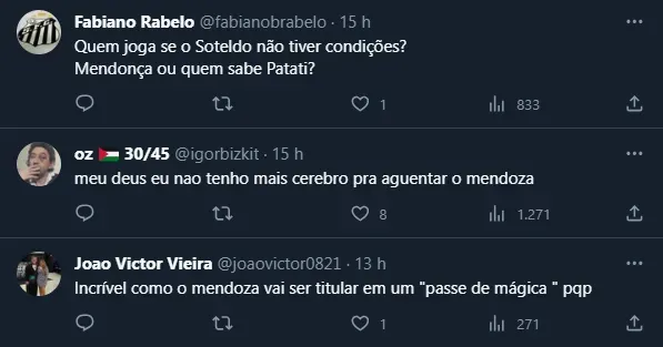 Assim, o técnico Marcelo Fernandes terá que pensar em uma nova estratégia de jogo com as opções que possui no banco de reservas. Dentre elas, quem deve voltar ao time titular é o também colombiano Stiven Mendoza. Contratado junto ao Ceará no início do ano, ele até conta com bons números, mas não é muito bem quisto na torcida.