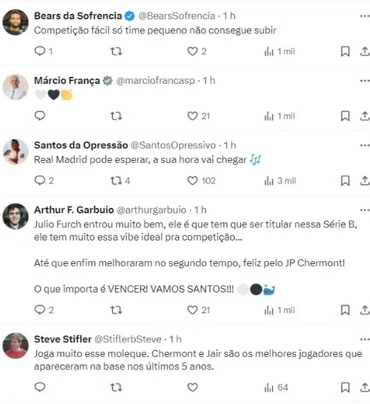 Os gols foram de JP Chermont, joia da base, e Furch. O argentino, que entrou no segundo tempo, exaltou a força do elenco santista e comentou sobre o primeiro tempo abaixo da equipe.