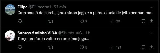 Resta saber a gravidade das dores que Furch relatou durante a final. O Santos deve divulgar, para os torcedores, o que realmente aconteceu com o centroavante de 34 anos.