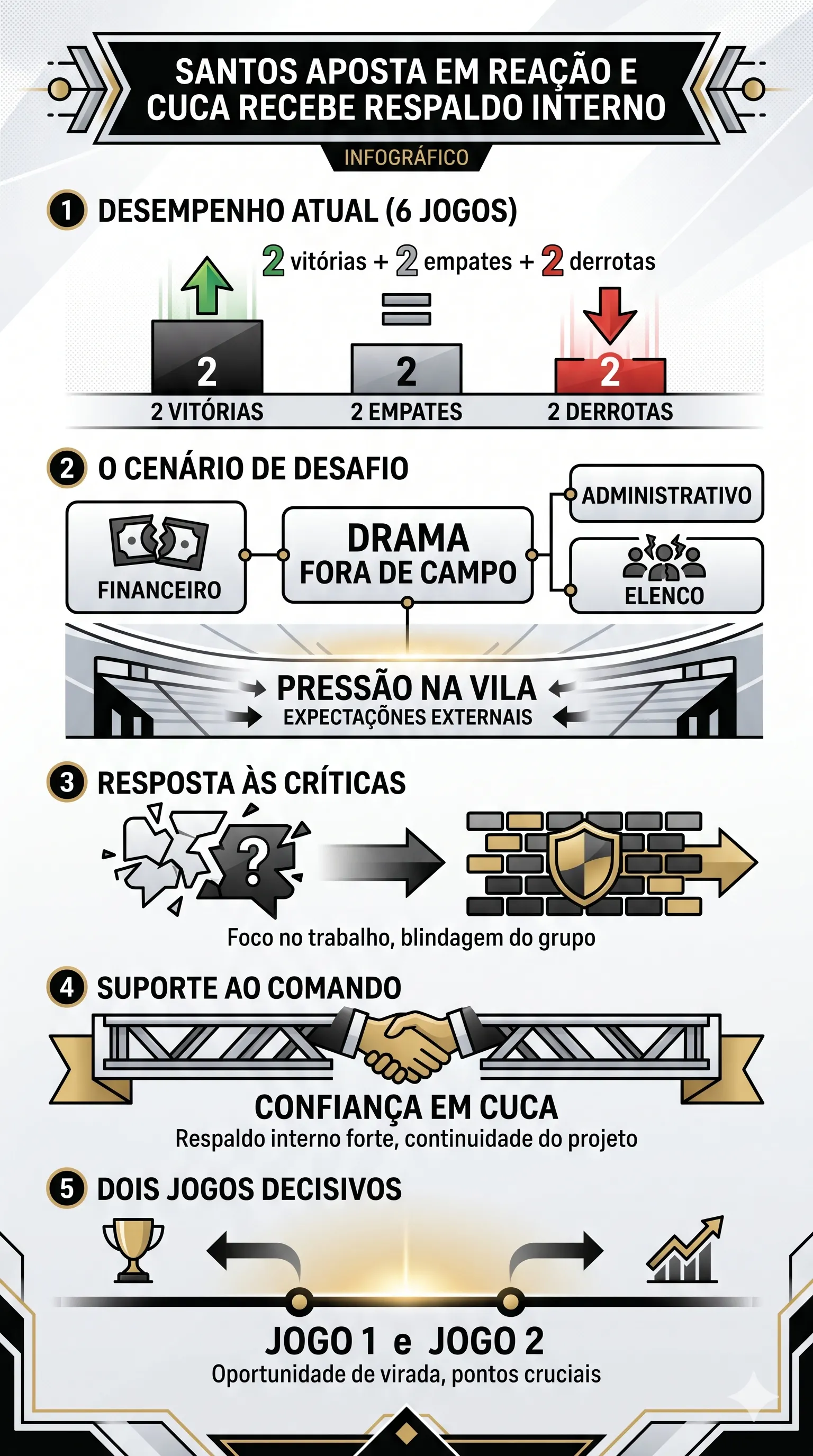Neste domingo (19), o Peixe recebe o Fluminense pelo Brasileirão e, na quarta-feira, encara o Coritiba pela Copa do Brasil. Para Brazão, jogar em casa será decisivo para recolocar o clube no caminho das vitórias e aliviar o ambiente no início do trabalho de Cuca.