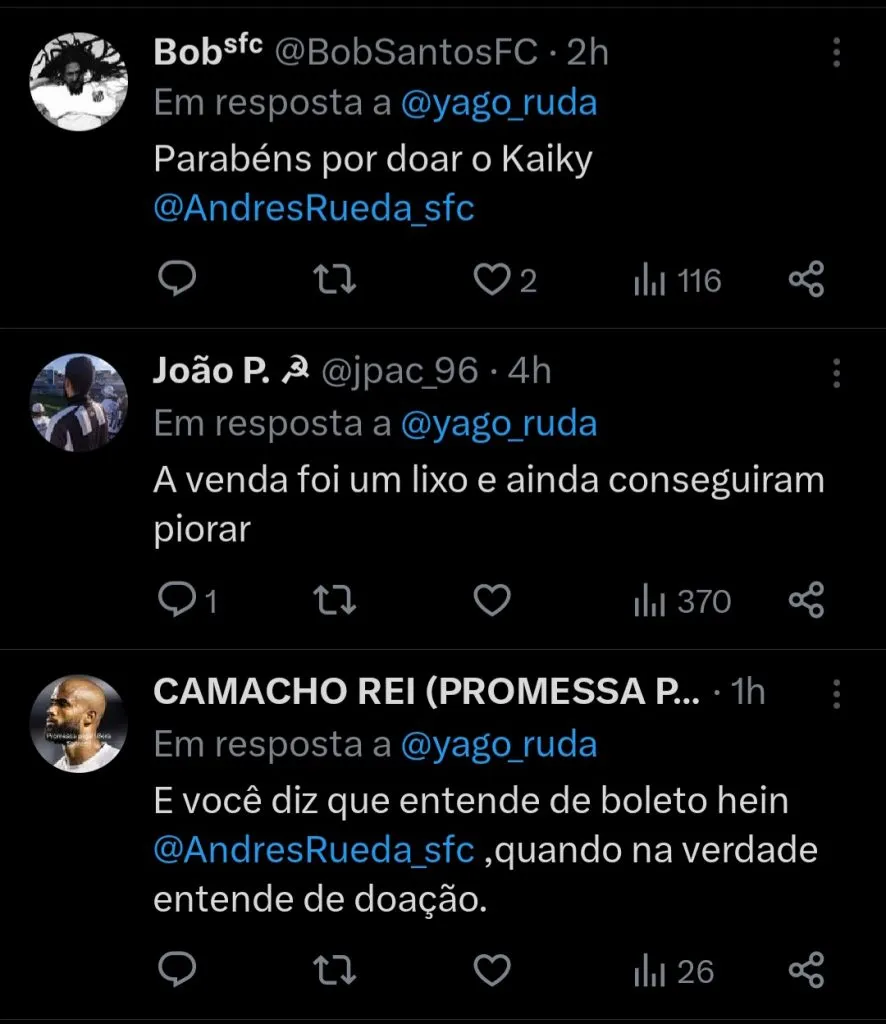 Ele vai além e opina em relação a transação feita pelo Santos em julho do ano passado: ‘Uma negociação para lá de ruim, que piorou ainda mais pelas dívidas com o Fisco espanhol e a aparente tentativa do clube de evitar quitá-la sem buscar antes um acordo”, completou Henrique Farinha, na noite desta sexta-feira (13), através do Twitter.