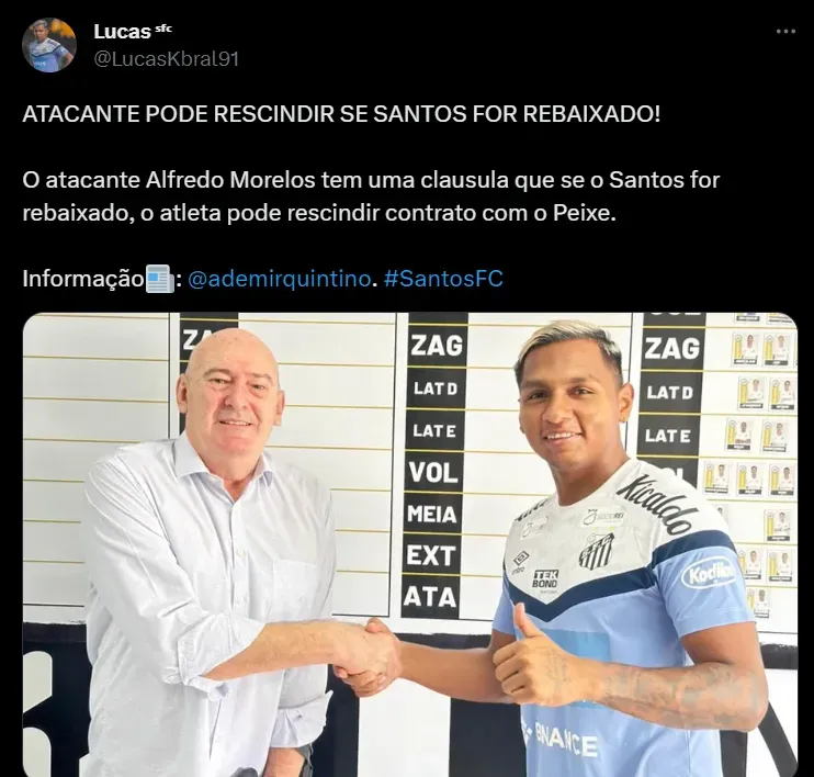 Porém, uma coisa é certa, quem assumir o time de Rueda terá a árdua missão de se salvar do rebaixamento, que pode ser o primeiro na história do Santos. Desde a chegada de Gallo, os bastidores estão mais quentes, com movimentações e rumores sobre o ambiente. Portanto, um dos reforços mais aguardados pela torcida, o colombiano Alfredo Morelos ainda não está nas condições físicas ideais, mas um detalhe do seu contrato CHOCOU os fãs.