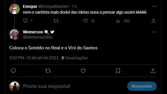 Muitos venezuelanos estão enlouquecidos com o desempenho de Soteldo hoje. Há quem diga que o atleta está até acima de Vinícius Júnior no Real Madrid, o que muitos santistas veem como apelação e não acreditam que nem o torcedor mais doente acredite nessa afirmação que surgiu em solo venezuelano.