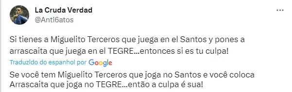 Um torcedor boliviano comentou que o talento do Santos merecia ter mais chances com a camisa da Seleção e cita que ele foi preterido a outros nomes que foram convocados. “Se você tem Miguelito Terceros que joga no Santos e você coloca Arrascaita que joga no Tigre… então a culpa é sua”.