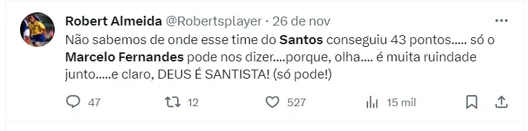 Madson honrou as camisas de Santos e Vasco, mas passa por uma situação surpresa. Após brilhar em São Januário, ele atuou no Alvinegro Praiano durante dois anos, onde colecionou histórias que o fizeram ganhar o apelido de Madshow, como relatou o portal UOL Esporte.