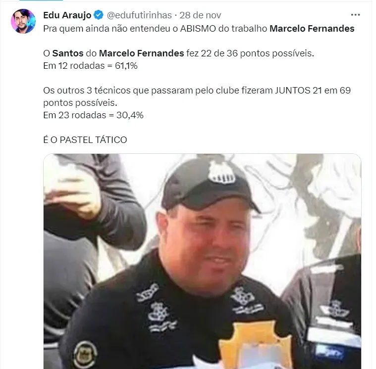 Marcelo Fernandes técnico do Santos durante partida pelo campeonato Brasileiro A 2023. Foto: Jorge Rodrigues/AGIF