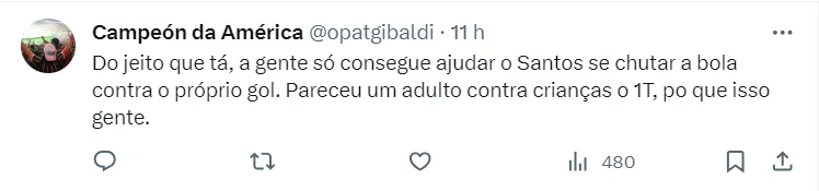 Através das redes sociais, a torcida criticou a atuação da equipe na derrota. Jean Lucas, que foi o mais criticado do elenco, ganhou respaldo do técnico Marcelo Fernandes durante coletiva. Mas, a situação do Peixe ainda é preocupante, deixando a equipe pressionada nessa reta final de competição.