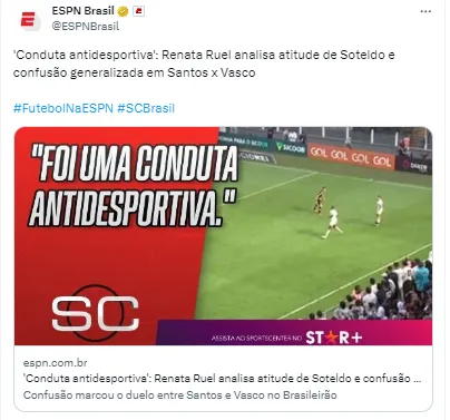 Renata Ruel deixou claro que Daronco errou ao não amarelar Soteldo, pois por ter pisado na bola ele cometeu uma falta por conduta antidesportiva. “Soteldo pisar na bola é infração. Está na regra do jogo: isto é uma conduta antidesportiva, falta de respeito ao jogo. Deveria marcar falta e dar amarelo“.