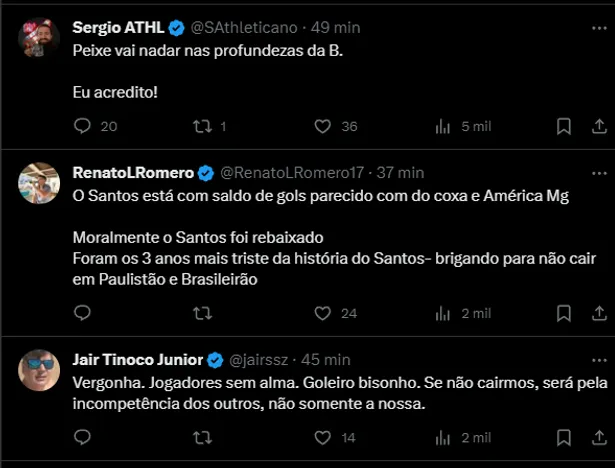 O Santos perdeu para o Athletico-PR pelo placar de 3 x 0, na noite deste domingo (3). Nas redes sociais, a torcida perdeu a paciência com a maioria dos jogadores e também com Marcelo Fernandes.