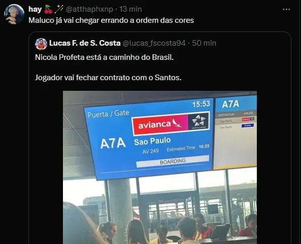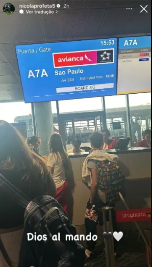 O venezuelano, convocado para a seleção de base do seu país, postou um stories no Instagram no qual aparece em um aeroporto com a foto da placa de destino escrito São Paulo.