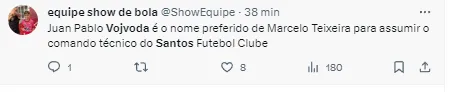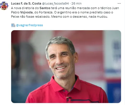 Com isso, conforme o que foi trazido na última semana, em primeira mão, pelo Bolavip Brasil, Juan Pablo Vojvoda virou um nome forte na Vila Belmiro. O comandante argentino do Fortaleza é um nome que vem se destacando no Brasil nos últimos anos. Outro destaque do Peixe também pode sair.