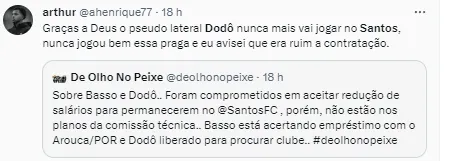 Conforme a apuração de Ricardinho Martins, o lateral-esquerdo Dodô já foi informado que deve procurar um novo Clube e não está nos planos do Santos para 2024. O atacante Maxi Silveira tem acordo encaminhado para defender o Peñarol, do Uruguai, na próxima temporada.
