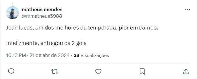 Apesar do resultado positivo na rodada, o desempenho ruim de um jogador ex-Santos acabou ganhando repercussão nas redes sociais. Isso porque, Jean Lucas, que teve uma passagem bem abaixo na Vila, acabou se destacando negativamente na última rodada.