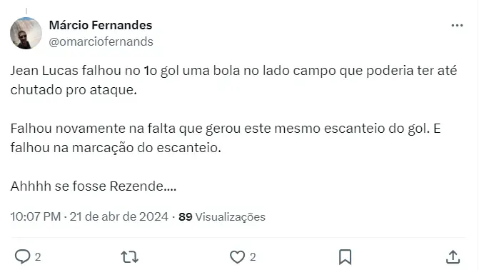 O desempenho de Jean Lucas realmente ficou abaixo em campo?