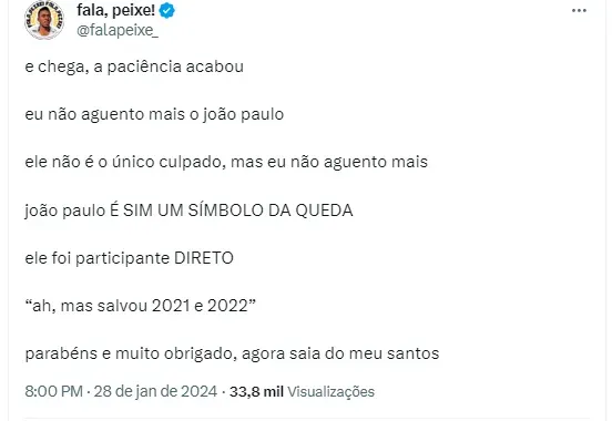 O venezuelano, inclusive, vem sendo o principal líder do Alvinegro Santista até o momento. Ele que vem chamando a responsabilidade nos bastidores, se posicionando e sendo muito ativo no mercado.