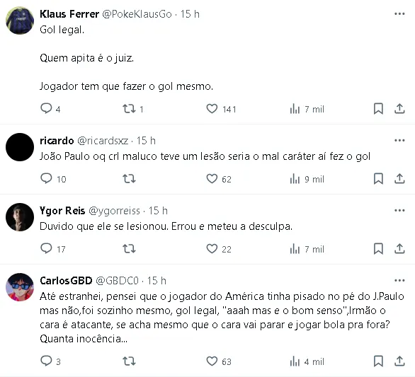 O presidente do Santos, Marcelo Teixeira, também se manifestou sobre a lesão de João Paulo e o lance polêmico que resultou no primeiro gol do América-MG. Ele desejou força ao goleiro e criticou a falta de fair play do adversário, destacando a importância do espírito esportivo e da ética no futebol.