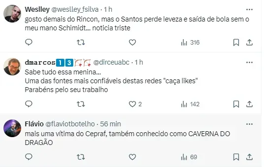 Reações da torcida sobre a notícia