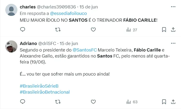 Entretanto, na Vila Belmiro é o nome que vem ganhando força. “Jorge Sampaoli pinta como principal nome para substituir Fábio Carille caso o treinador do Santos seja demitido na próxima quarta-feira (19). E esse risco, como eu já falei, existe e é muito grande caso o Santos perca para o Goiás, na Vila Belmiro”.